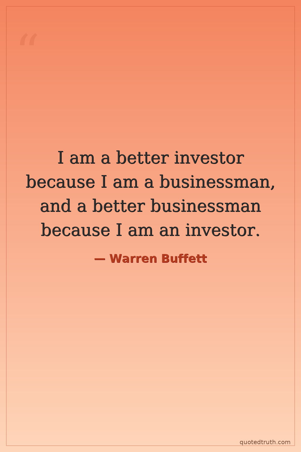 I am a better investor because I am a businessman, and a better businessman because I am an investor.