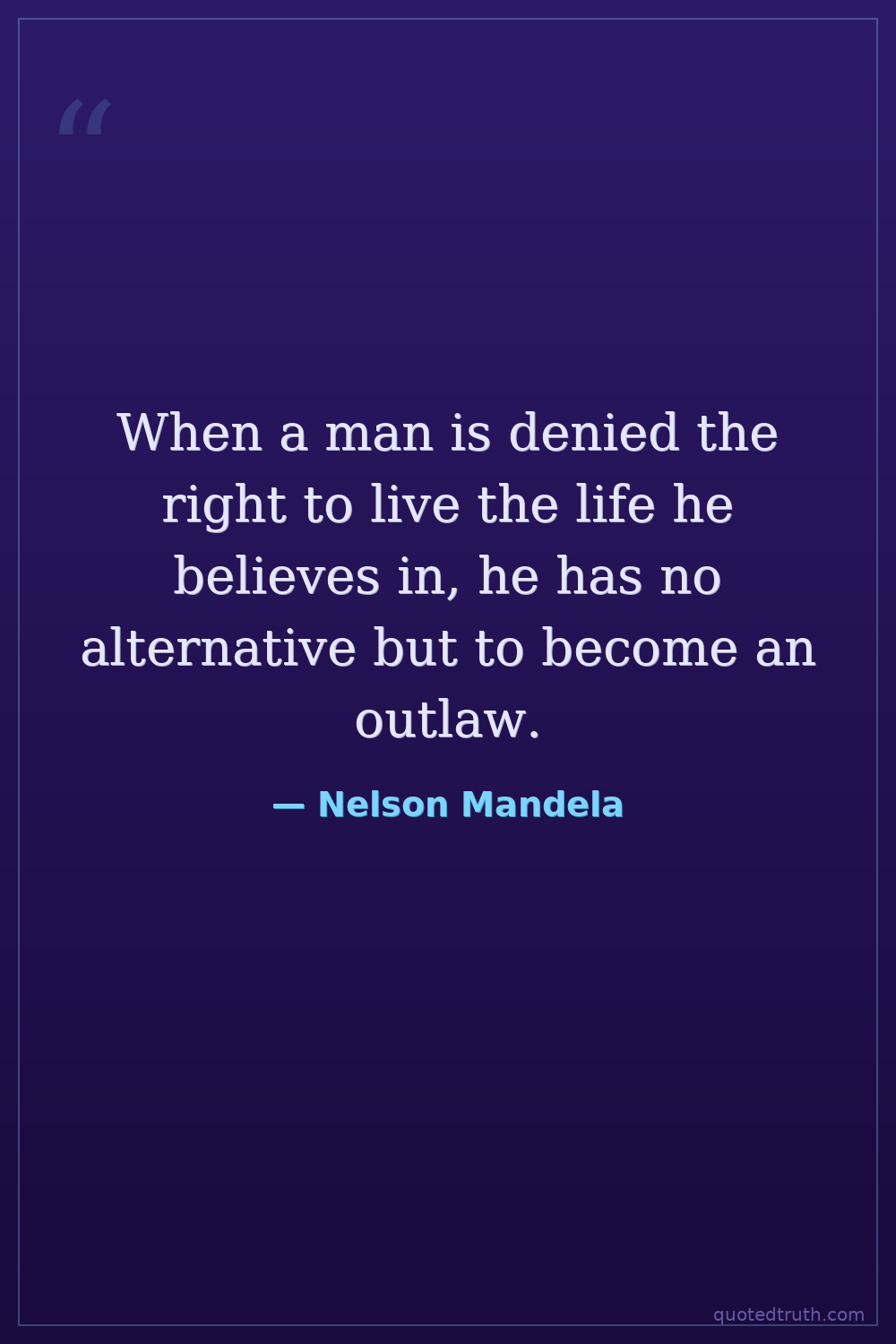 When a man is denied the right to live the life he believes in, he has no alternative but to become an outlaw.