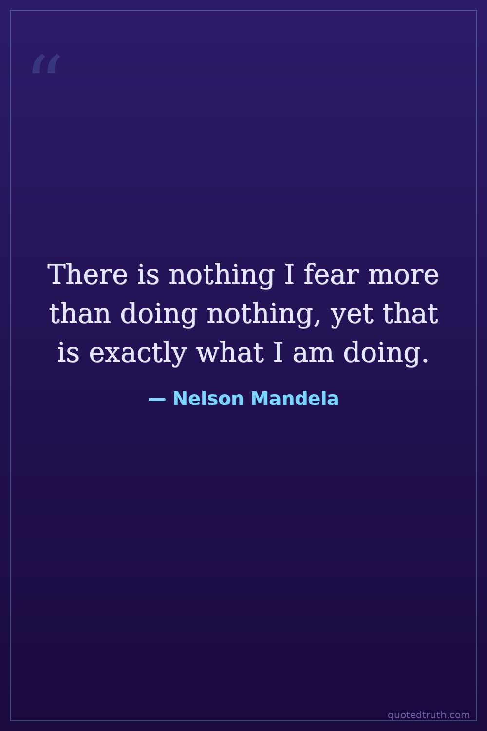 There is nothing I fear more than doing nothing, yet that is exactly what I am doing.