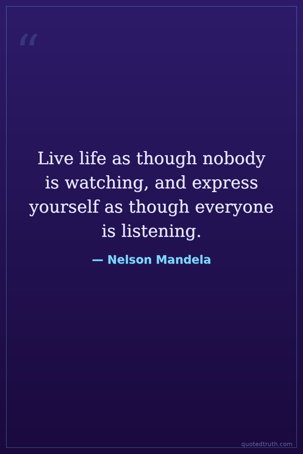 Live life as though nobody is watching, and express yourself as though everyone is listening.