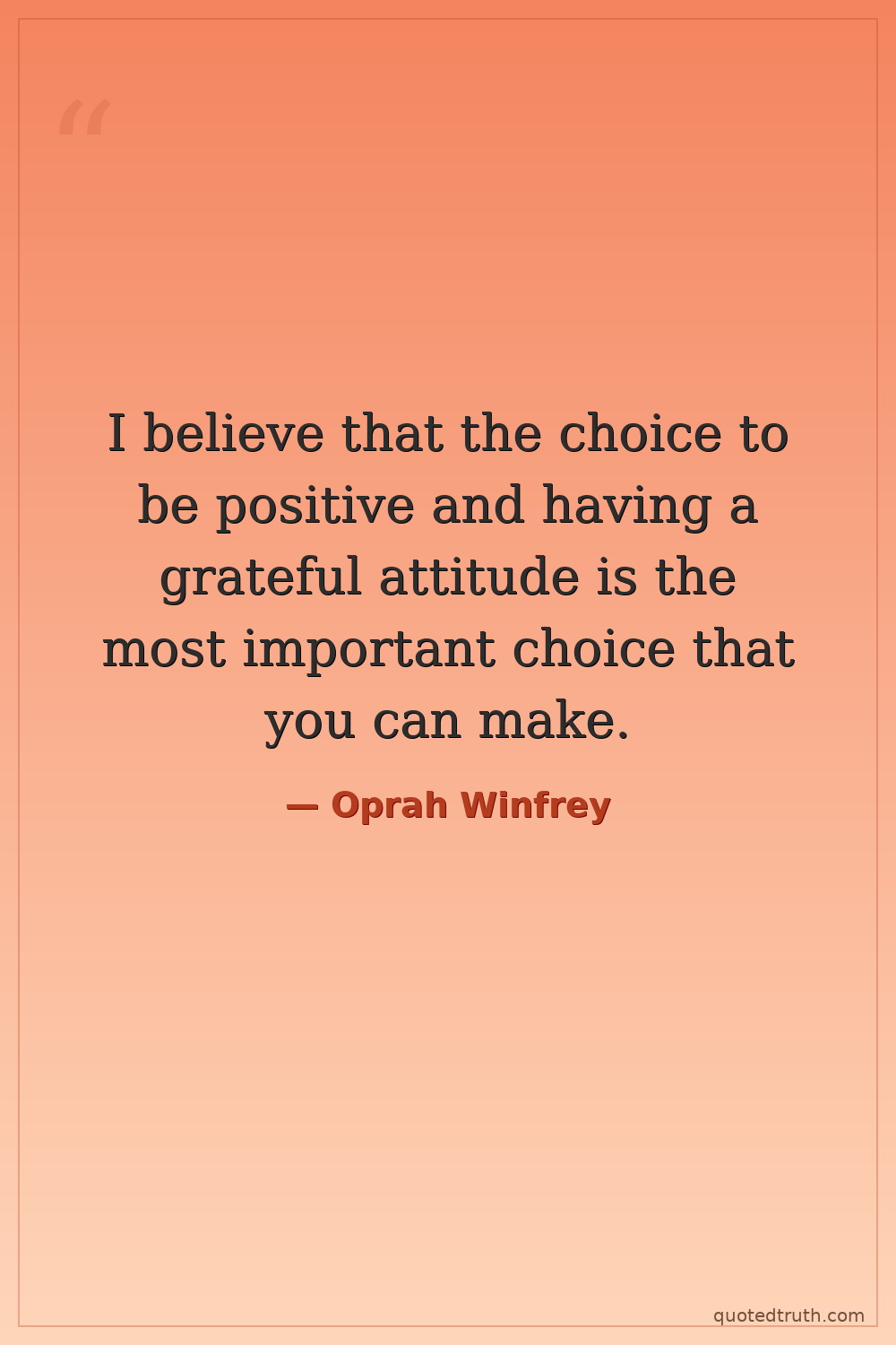 I believe that the choice to be positive and having a grateful attitude is the most important choice that you can make.