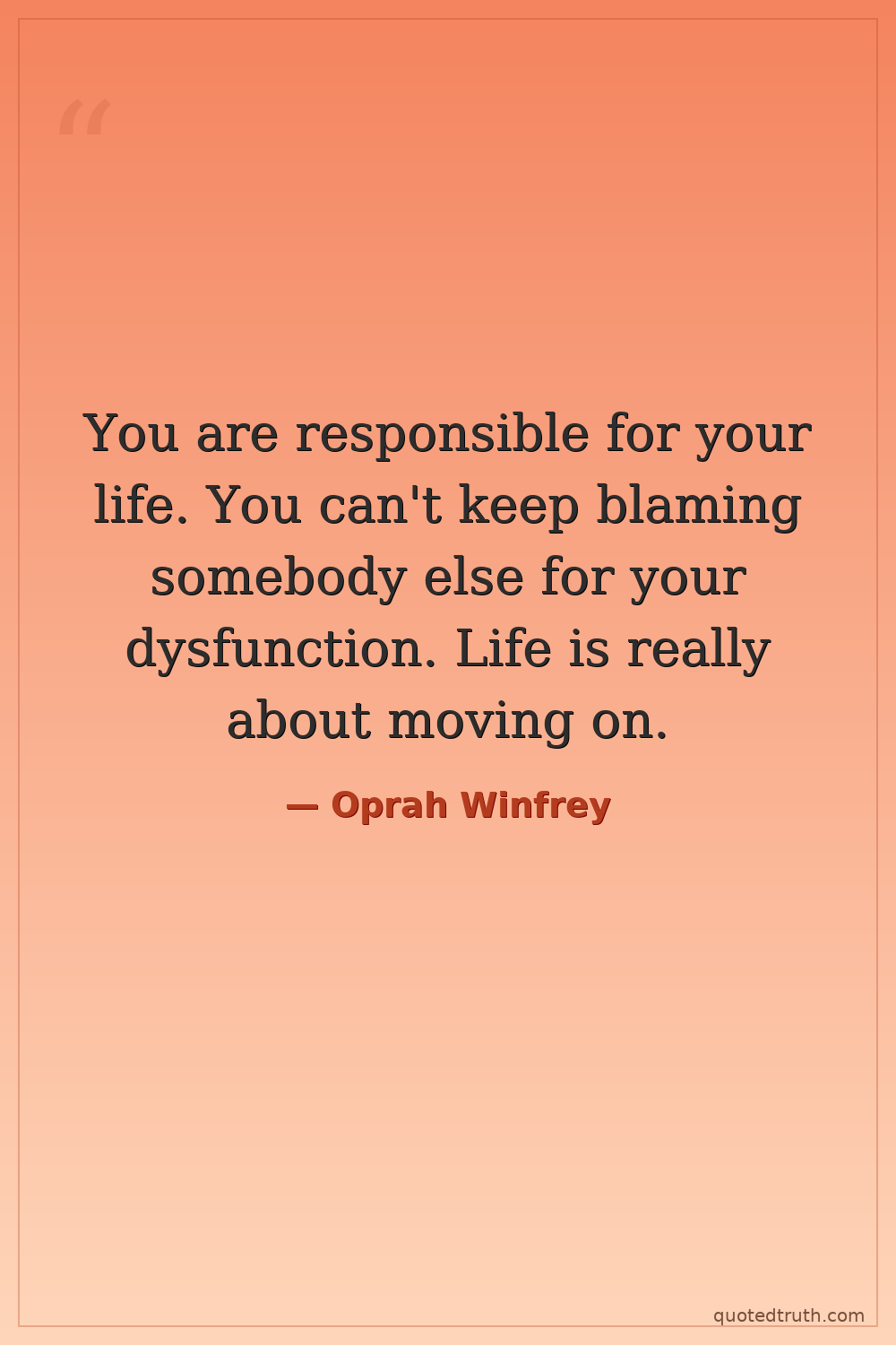 You are responsible for your life. You can't keep blaming somebody else for your dysfunction. Life is really about moving on.