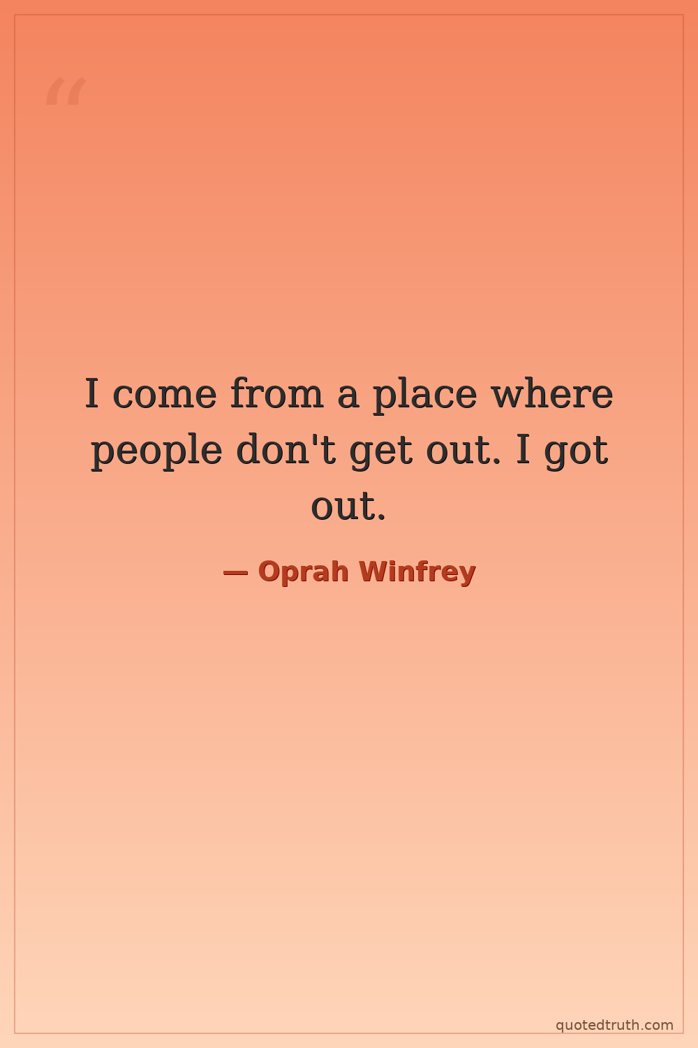 I come from a place where people don't get out. I got out.