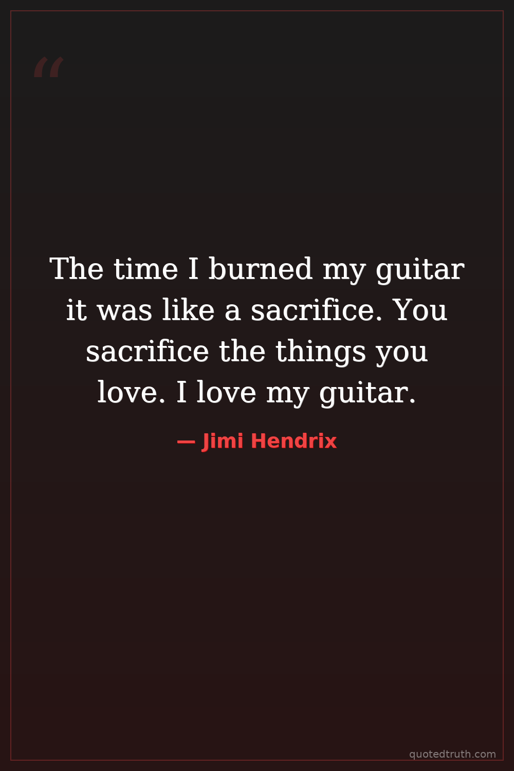 The time I burned my guitar it was like a sacrifice. You sacrifice the things you love. I love my guitar.