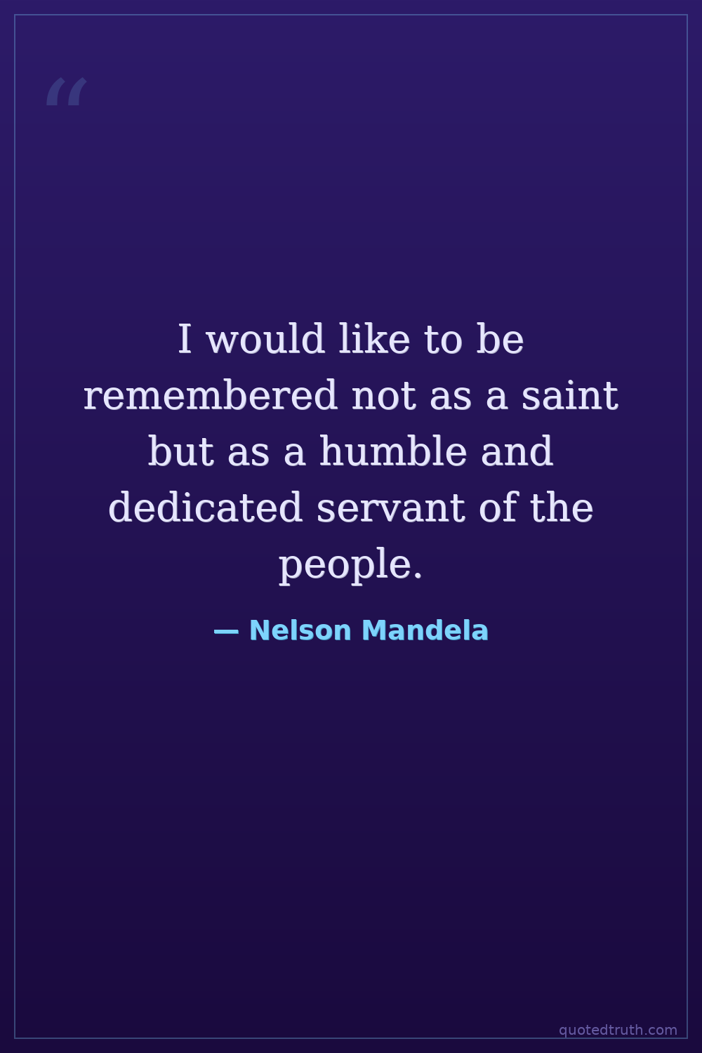 I would like to be remembered not as a saint but as a humble and dedicated servant of the people.