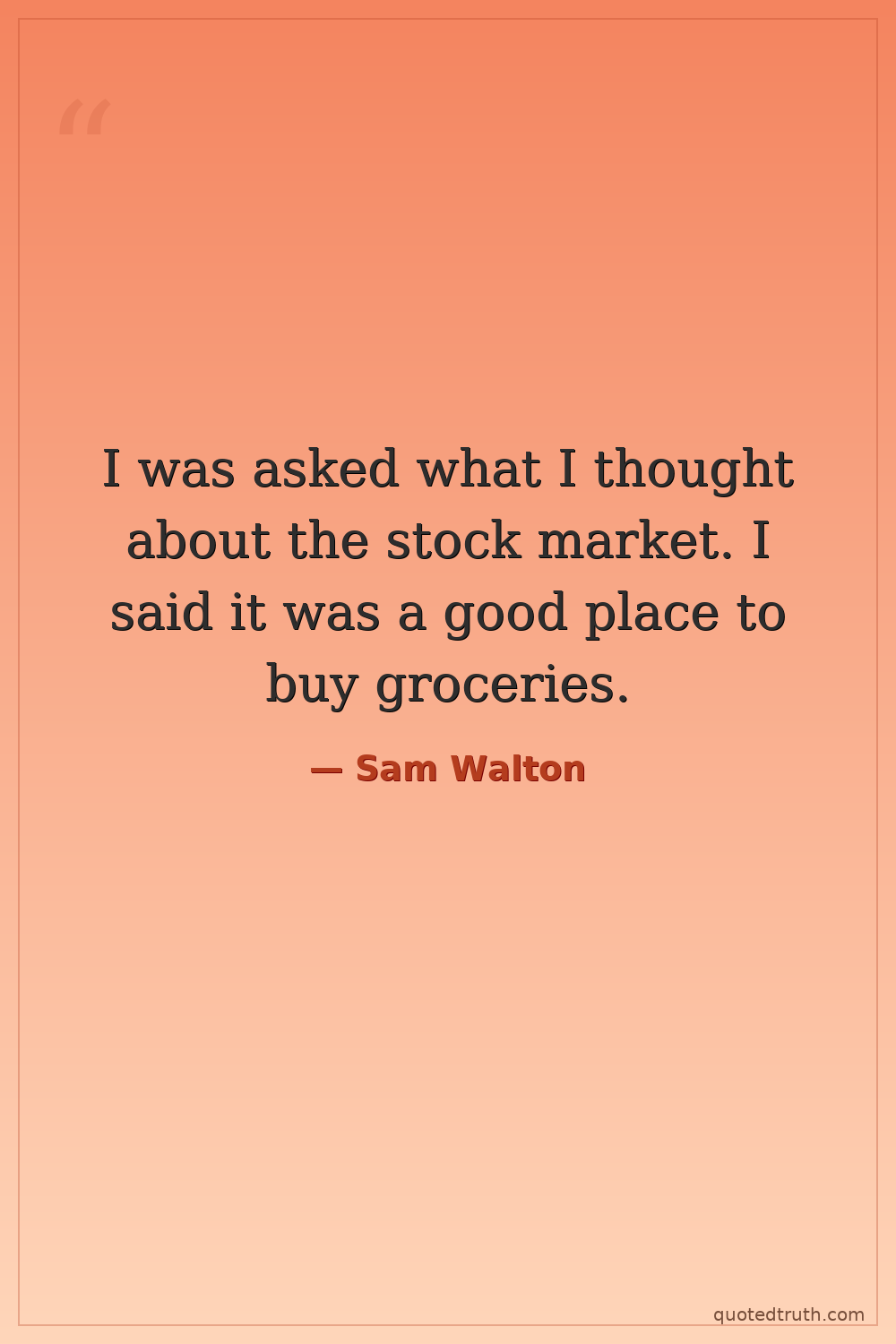 I was asked what I thought about the stock market. I said it was a good place to buy groceries.