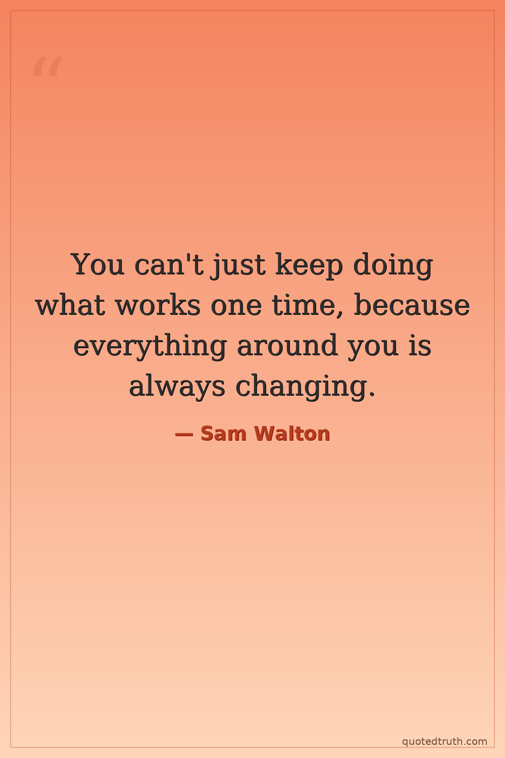 You can't just keep doing what works one time, because everything around you is always changing.