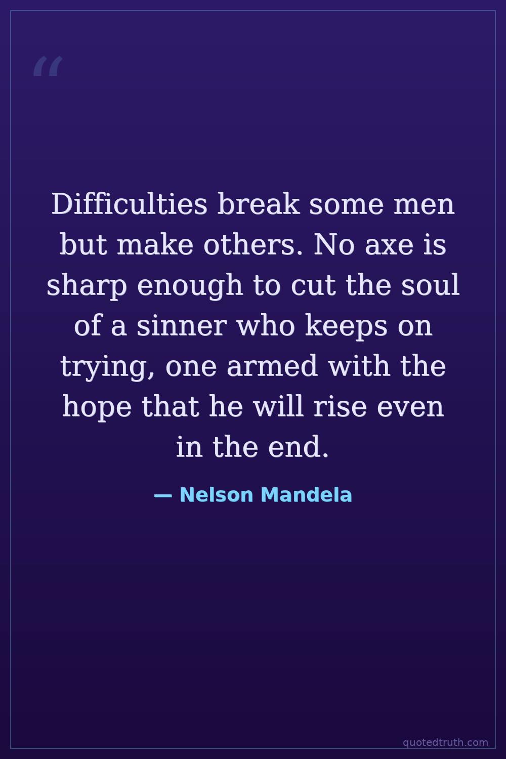 Difficulties break some men but make others. No axe is sharp enough to cut the soul of a sinner who keeps on trying, one armed with the hope that he will rise even in the end.