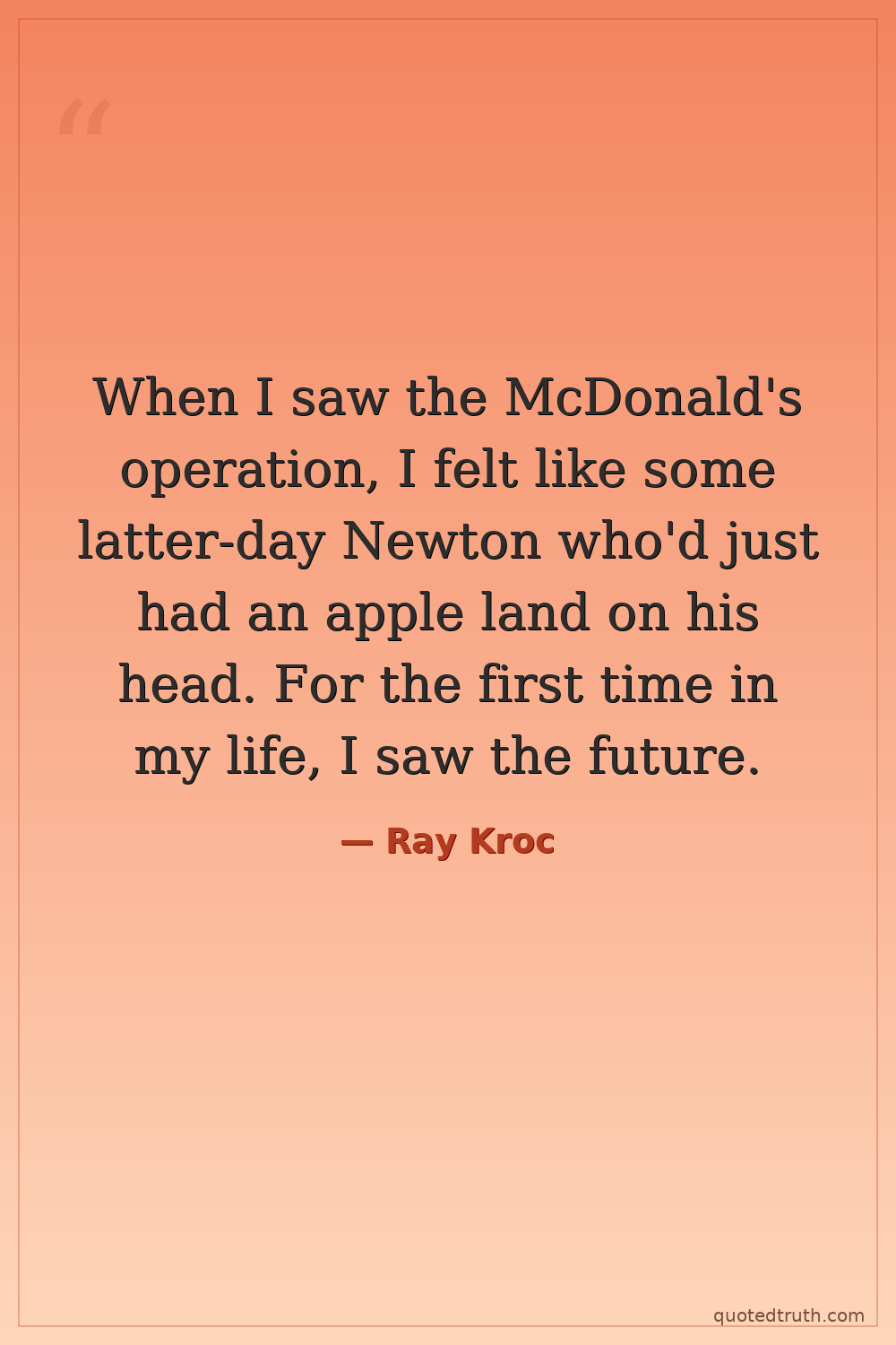 When I saw the McDonald's operation, I felt like some latter-day Newton who'd just had an apple land on his head. For the first time in my life, I saw the future.