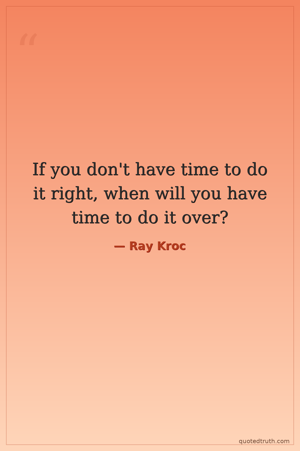 If you don't have time to do it right, when will you have time to do it over?