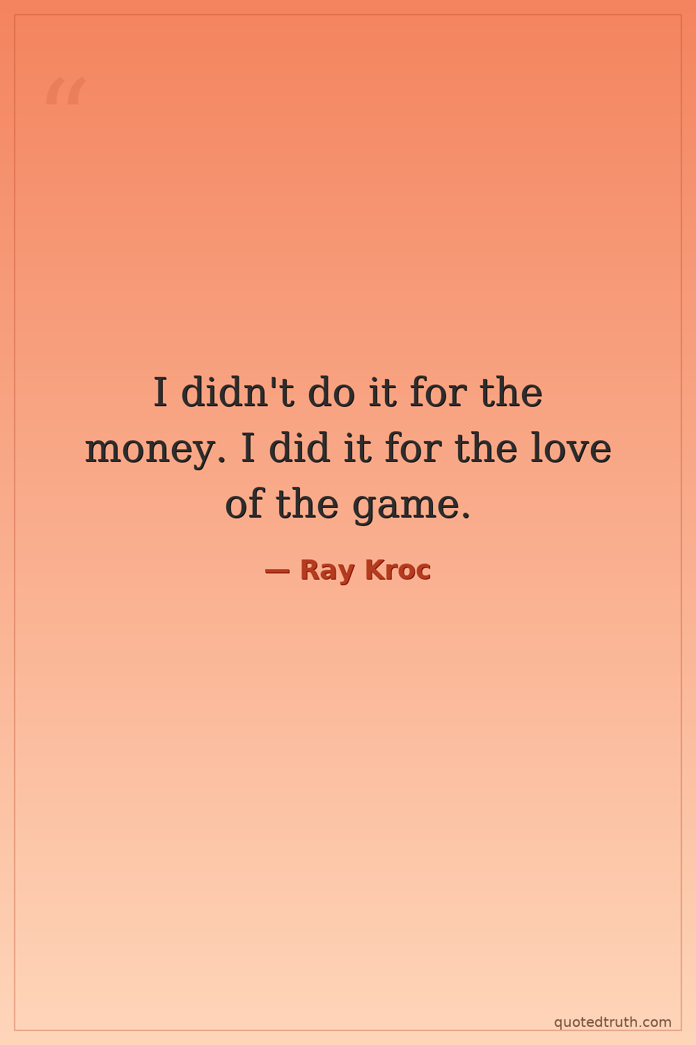 I didn't do it for the money. I did it for the love of the game.