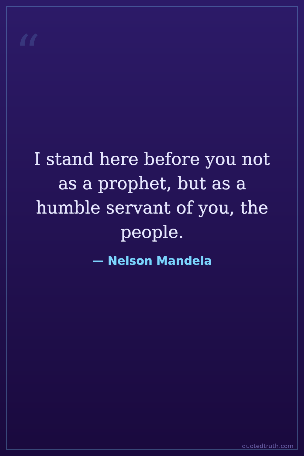 I stand here before you not as a prophet, but as a humble servant of you, the people.