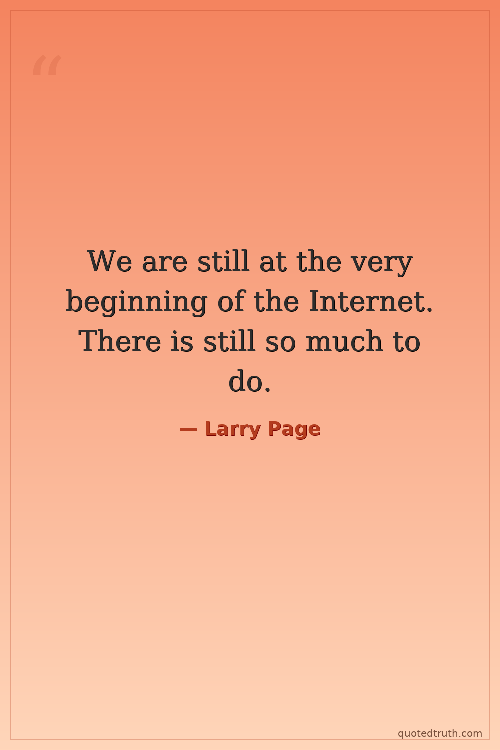 We are still at the very beginning of the Internet. There is still so much to do.