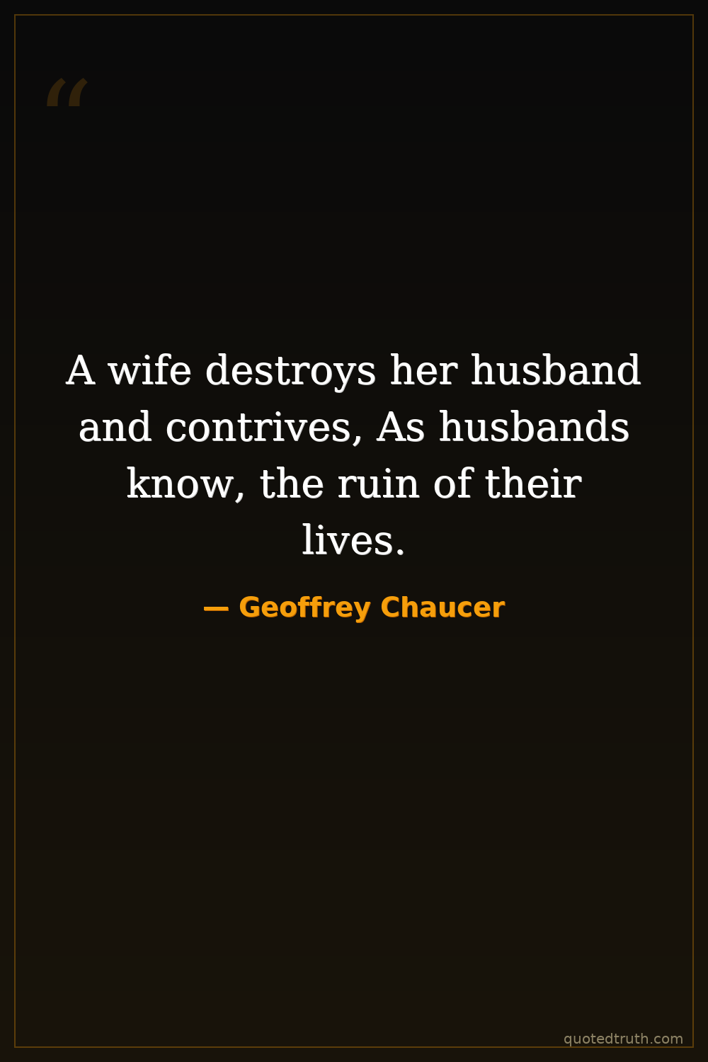A wife destroys her husband and contrives, As husbands know, the ruin of their lives.