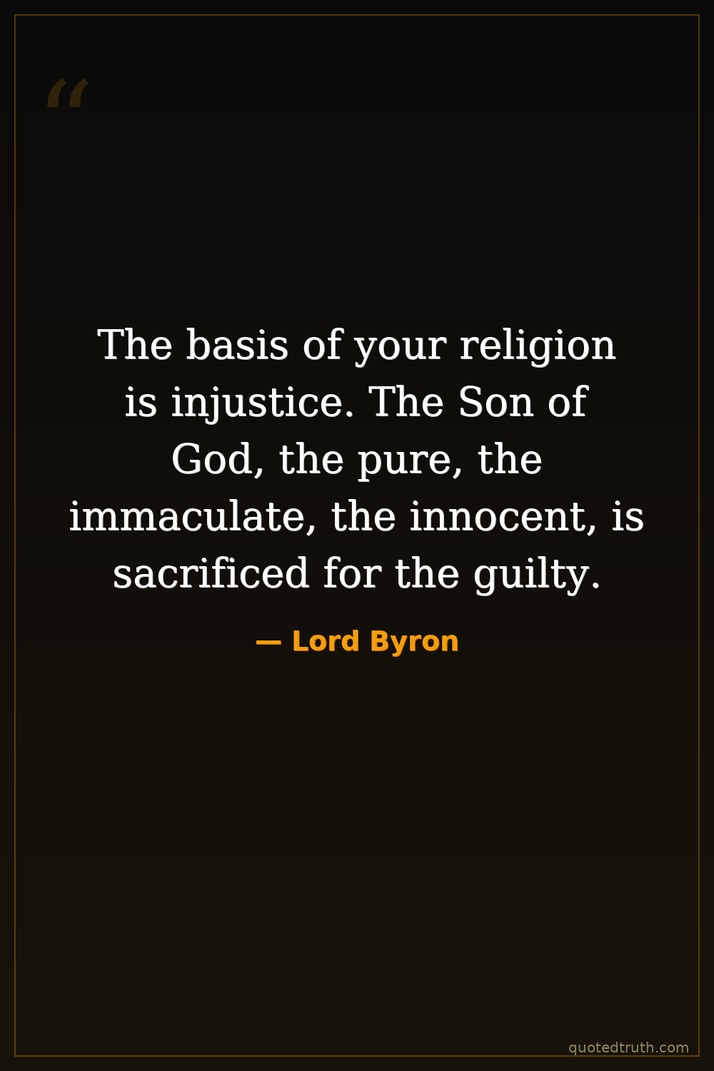 The basis of your religion is injustice. The Son of God, the pure, the immaculate, the innocent, is sacrificed for the guilty.