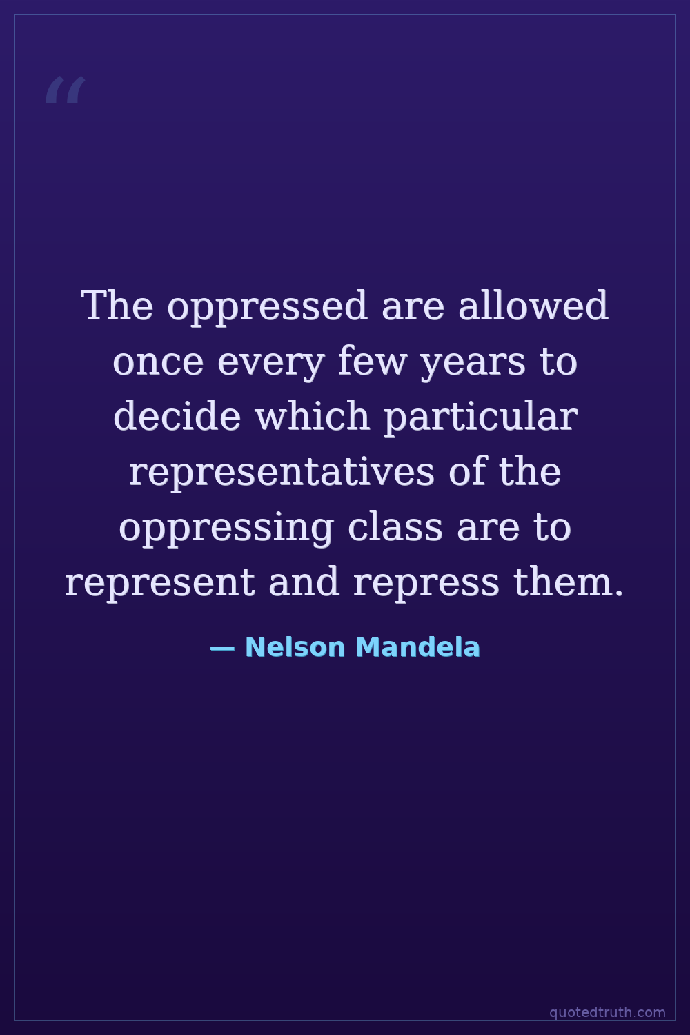 The oppressed are allowed once every few years to decide which particular representatives of the oppressing class are to represent and repress them.