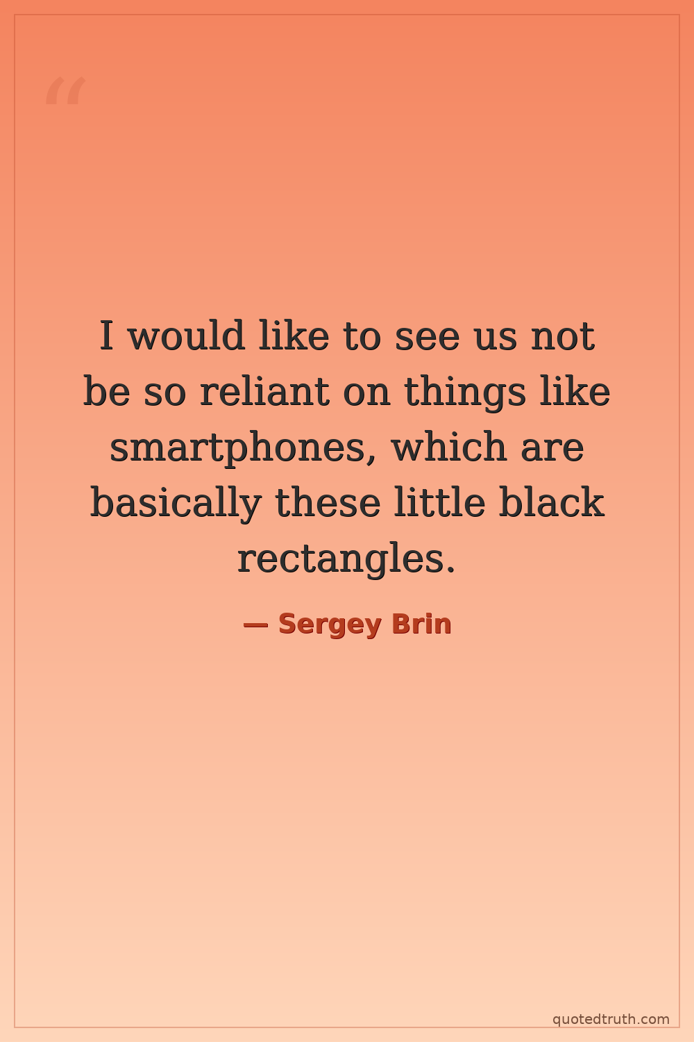 I would like to see us not be so reliant on things like smartphones, which are basically these little black rectangles.