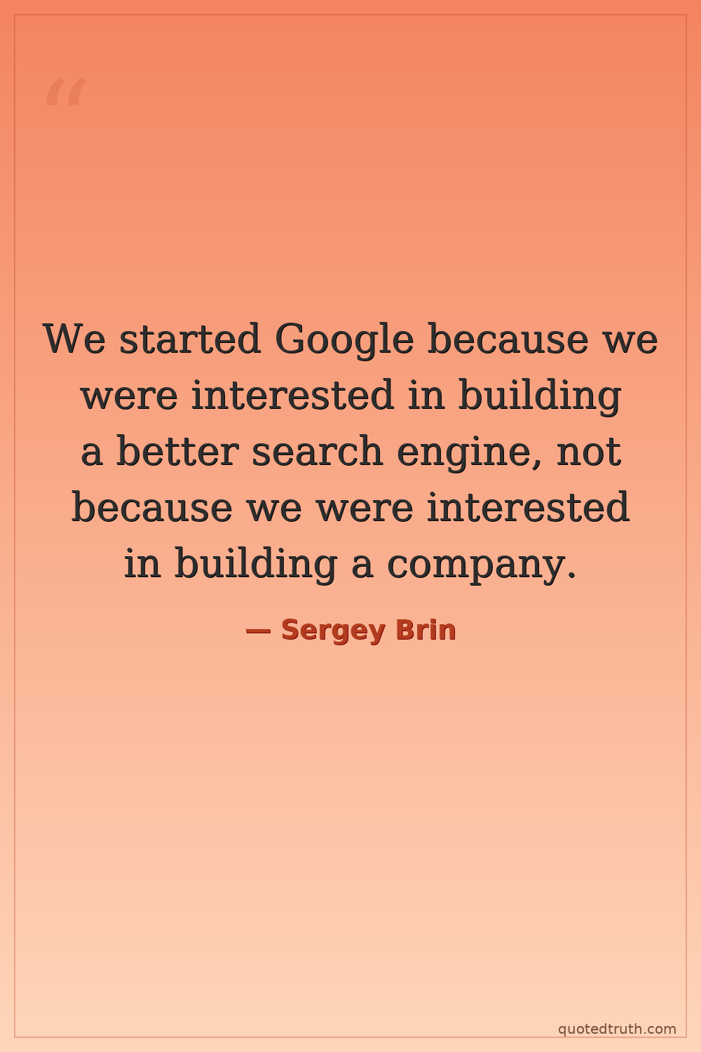 We started Google because we were interested in building a better search engine, not because we were interested in building a company.