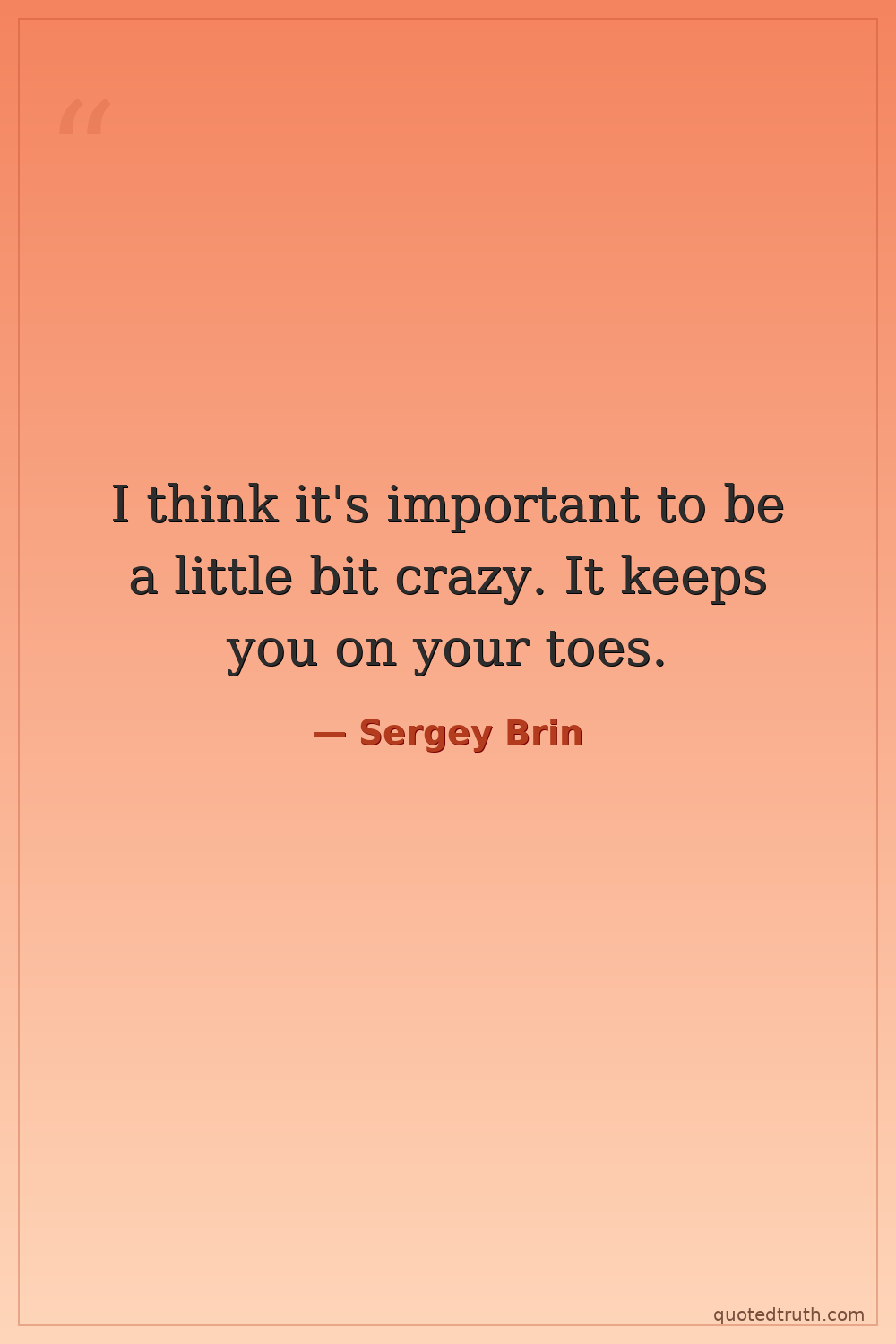 I think it's important to be a little bit crazy. It keeps you on your toes.