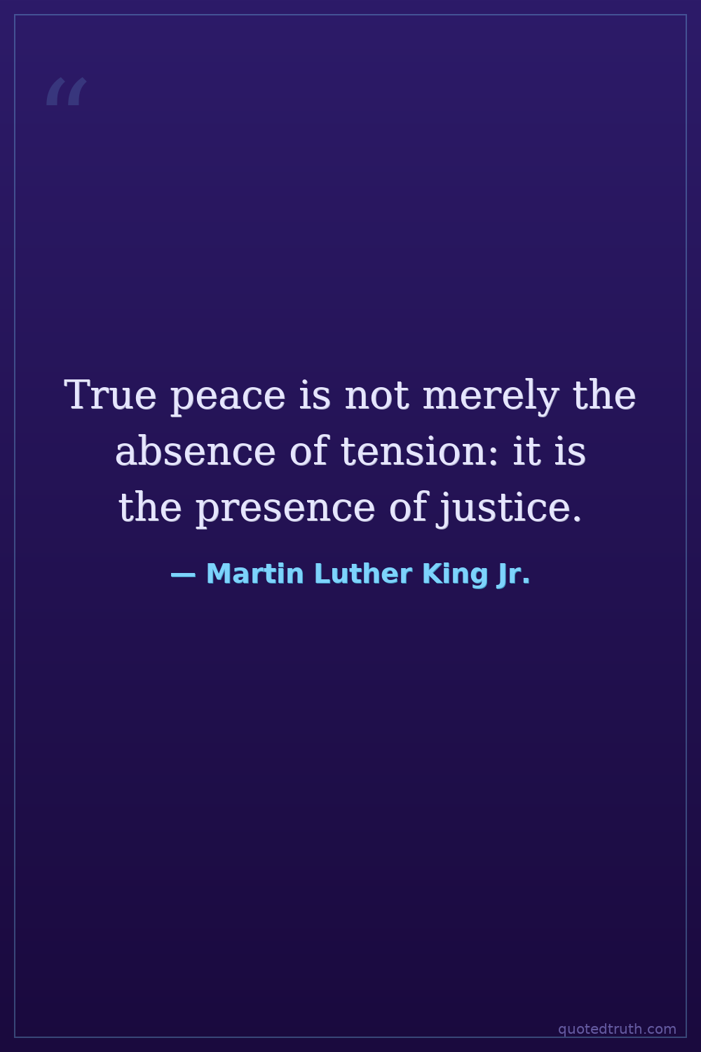 True peace is not merely the absence of tension: it is the presence of justice.