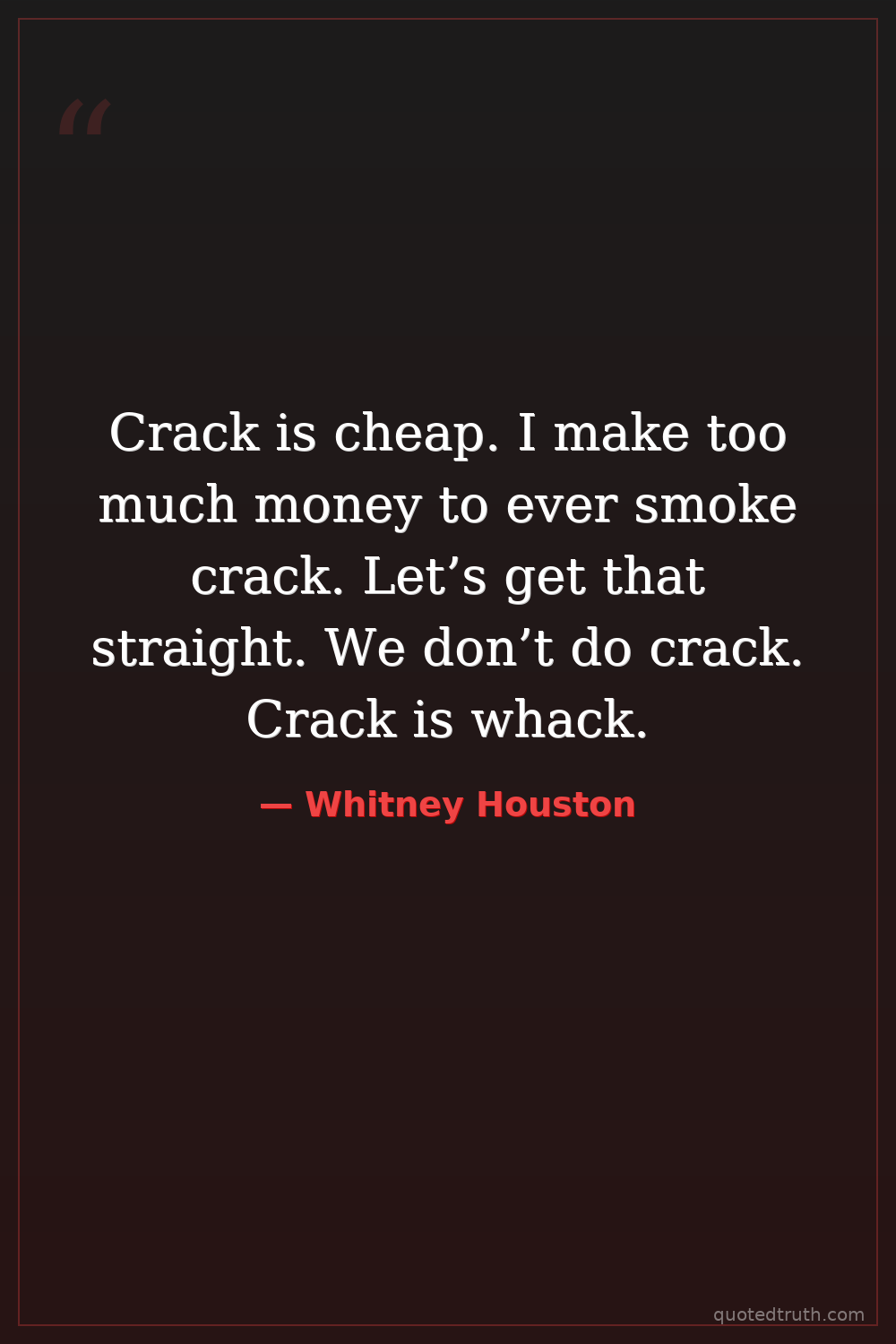 Crack is cheap. I make too much money to ever smoke crack. Let’s get that straight. We don’t do crack. Crack is whack.