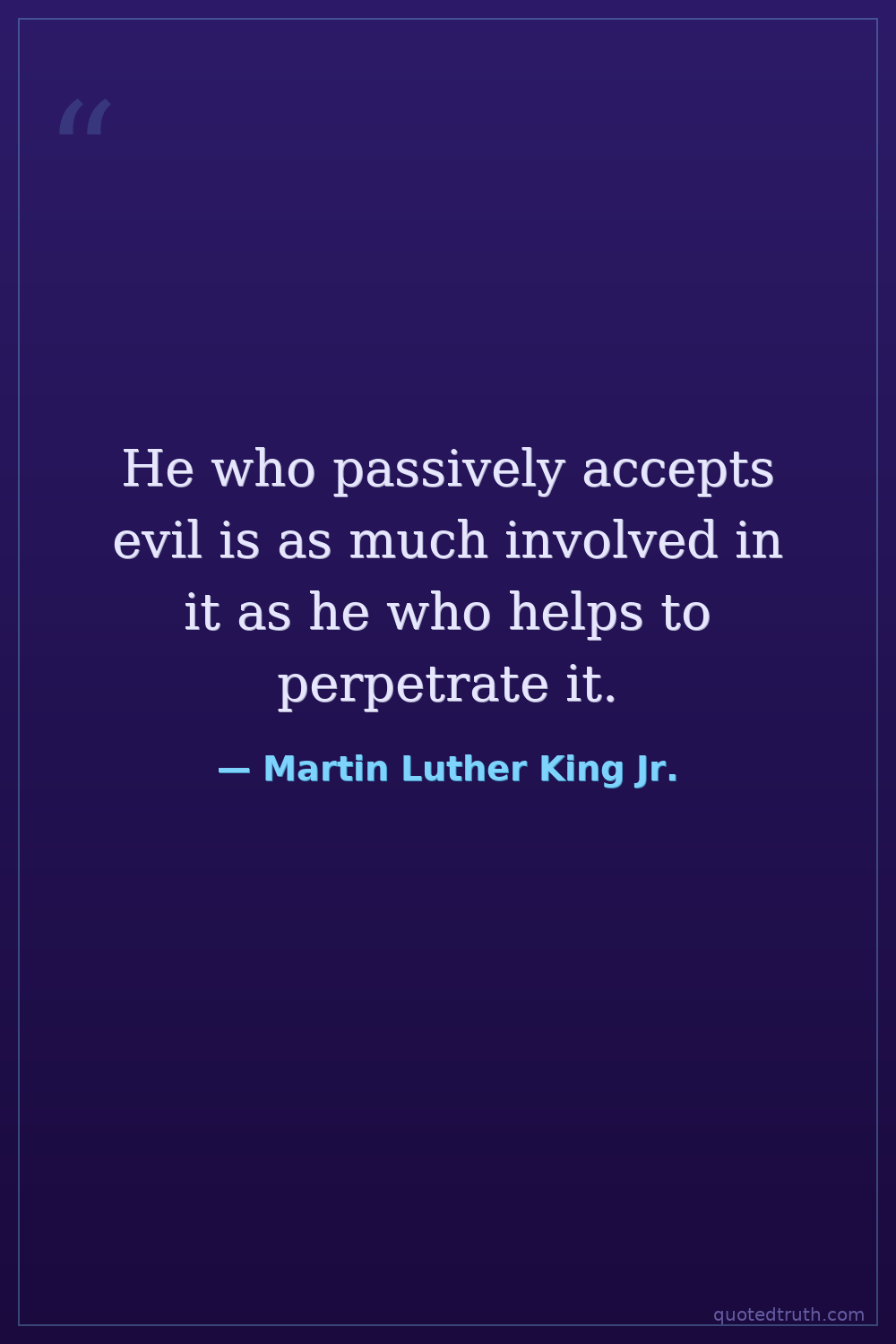 He who passively accepts evil is as much involved in it as he who helps to perpetrate it.