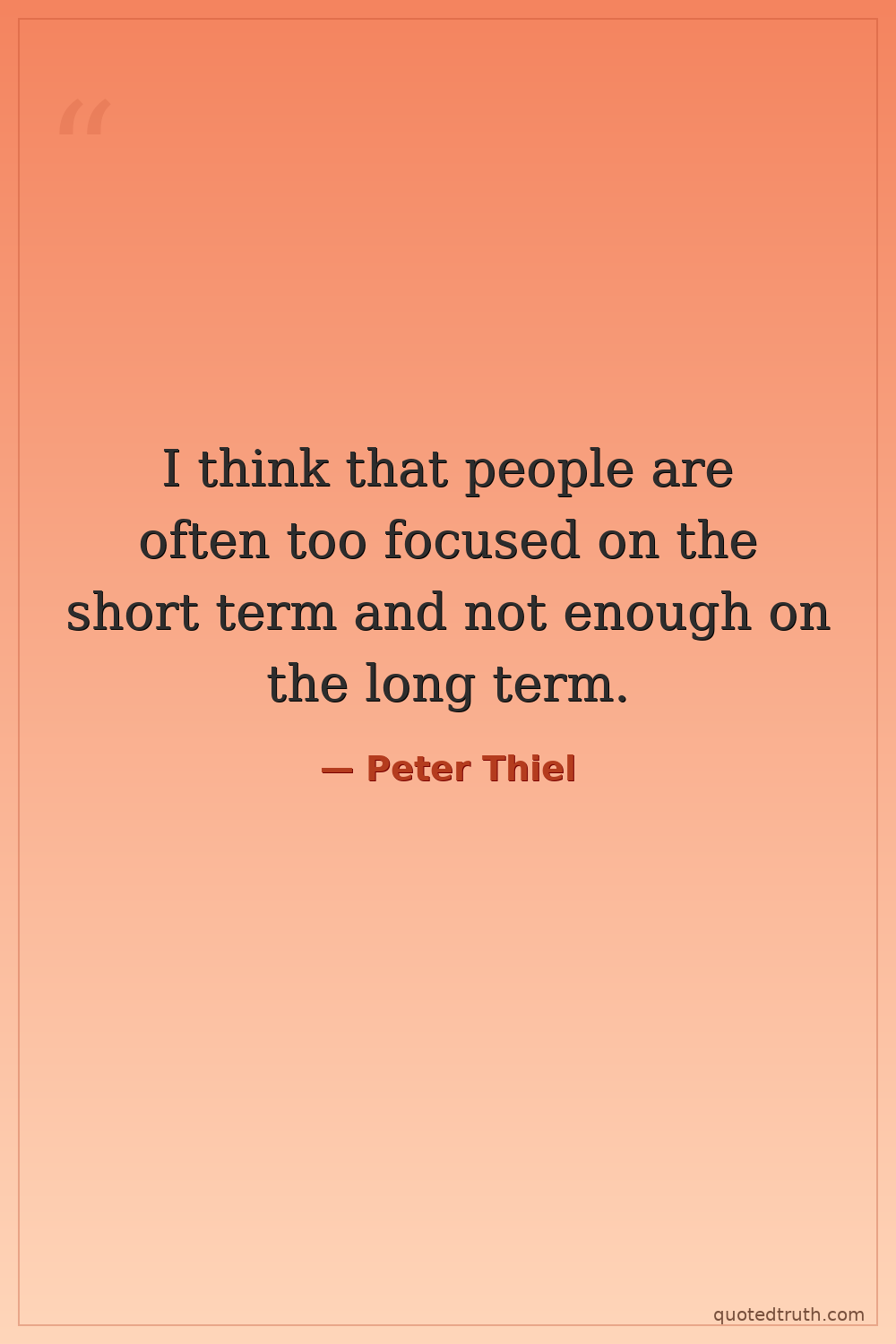I think that people are often too focused on the short term and not enough on the long term.