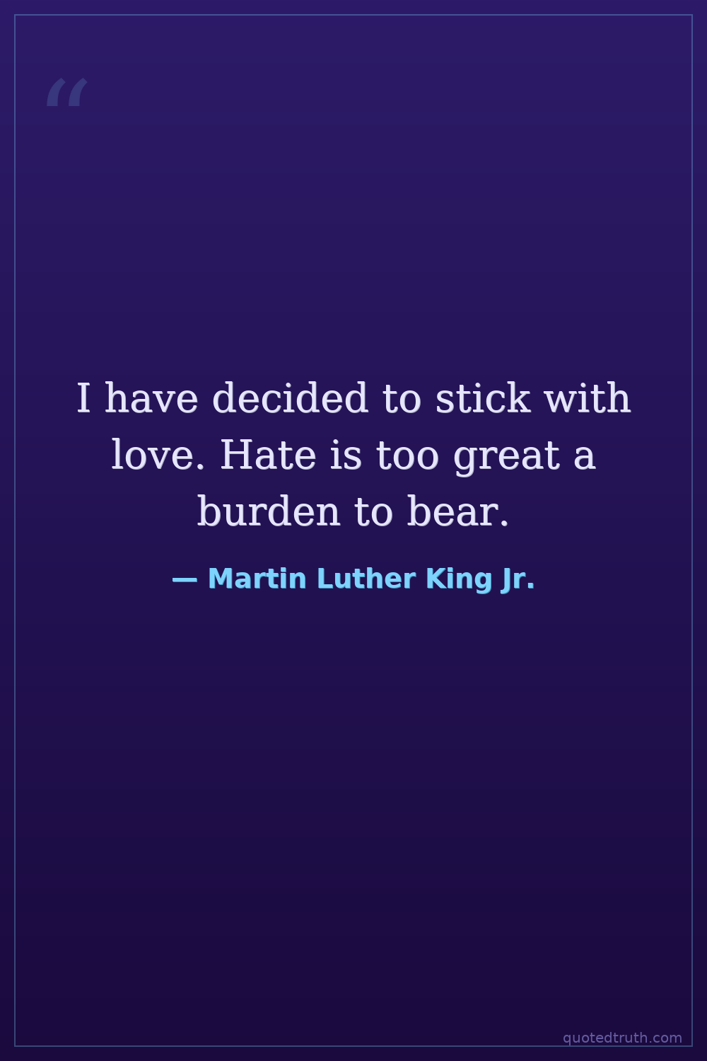 I have decided to stick with love. Hate is too great a burden to bear.
