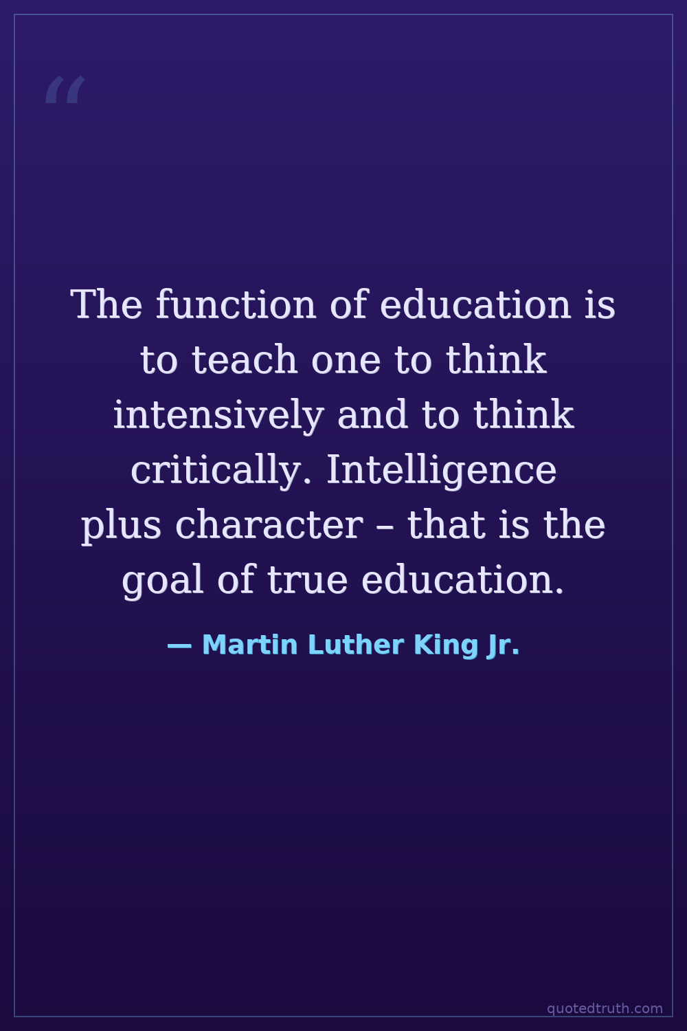 The function of education is to teach one to think intensively and to think critically. Intelligence plus character – that is the goal of true education.