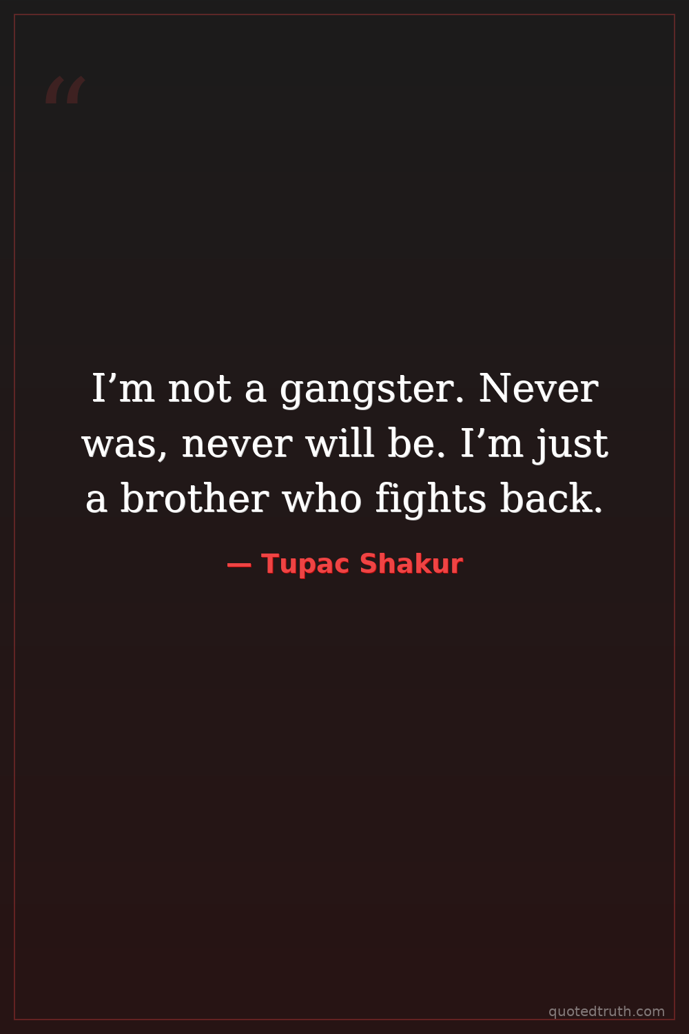 I’m not a gangster. Never was, never will be. I’m just a brother who fights back.
