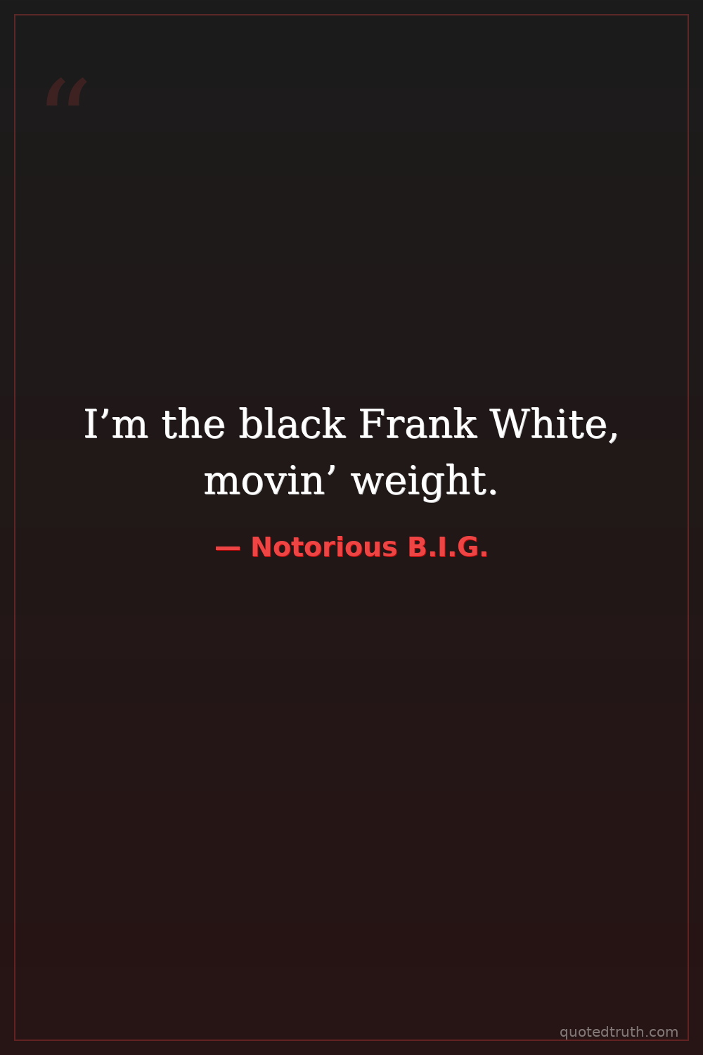 I’m the black Frank White, movin’ weight.