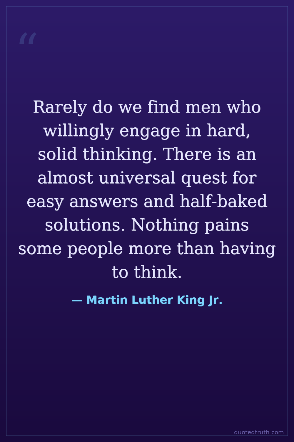 Rarely do we find men who willingly engage in hard, solid thinking. There is an almost universal quest for easy answers and half-baked solutions. Nothing pains some people more than having to think.