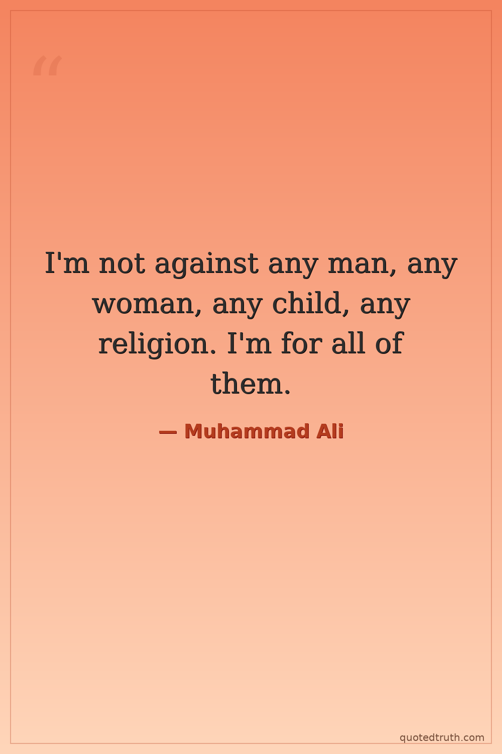 I'm not against any man, any woman, any child, any religion. I'm for all of them.