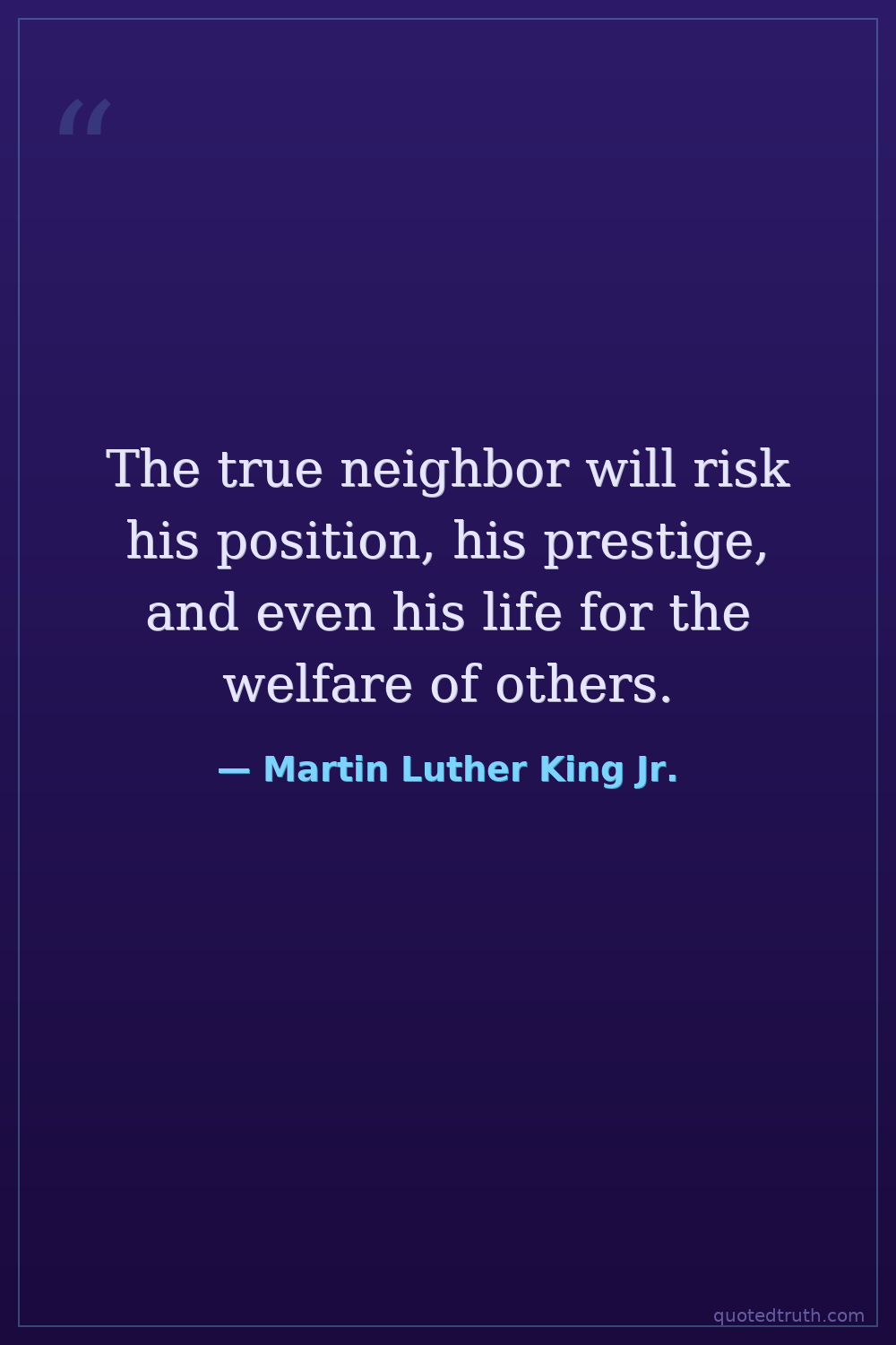 The true neighbor will risk his position, his prestige, and even his life for the welfare of others.