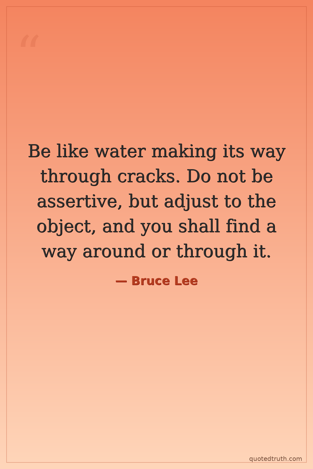 Be like water making its way through cracks. Do not be assertive, but adjust to the object, and you shall find a way around or through it.