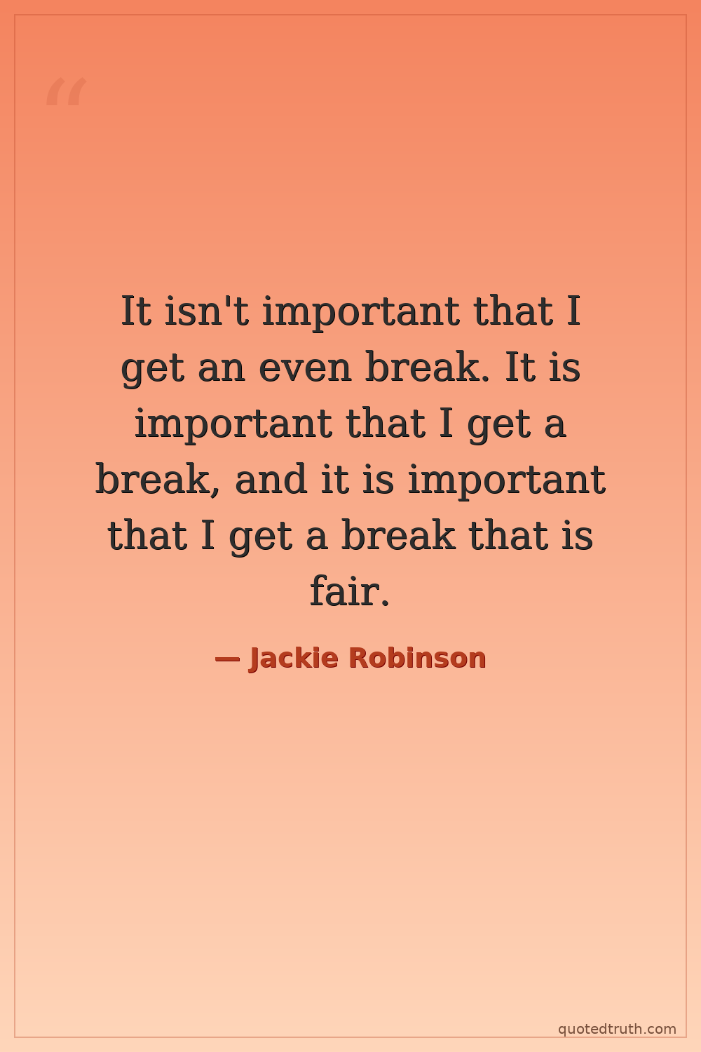 It isn't important that I get an even break. It is important that I get a break, and it is important that I get a break that is fair.