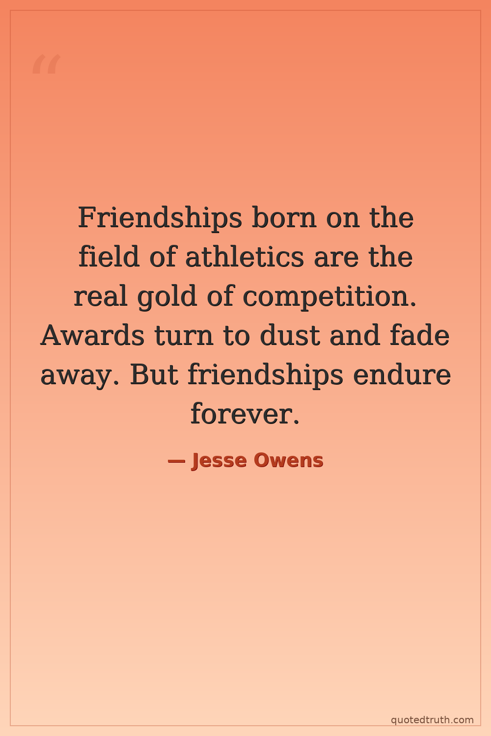 Friendships born on the field of athletics are the real gold of competition. Awards turn to dust and fade away. But friendships endure forever.