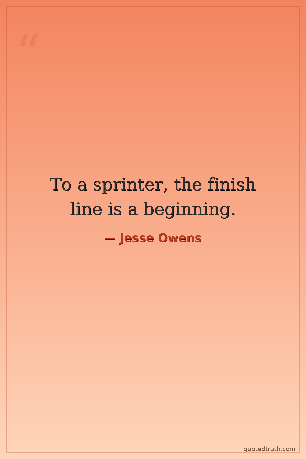To a sprinter, the finish line is a beginning.