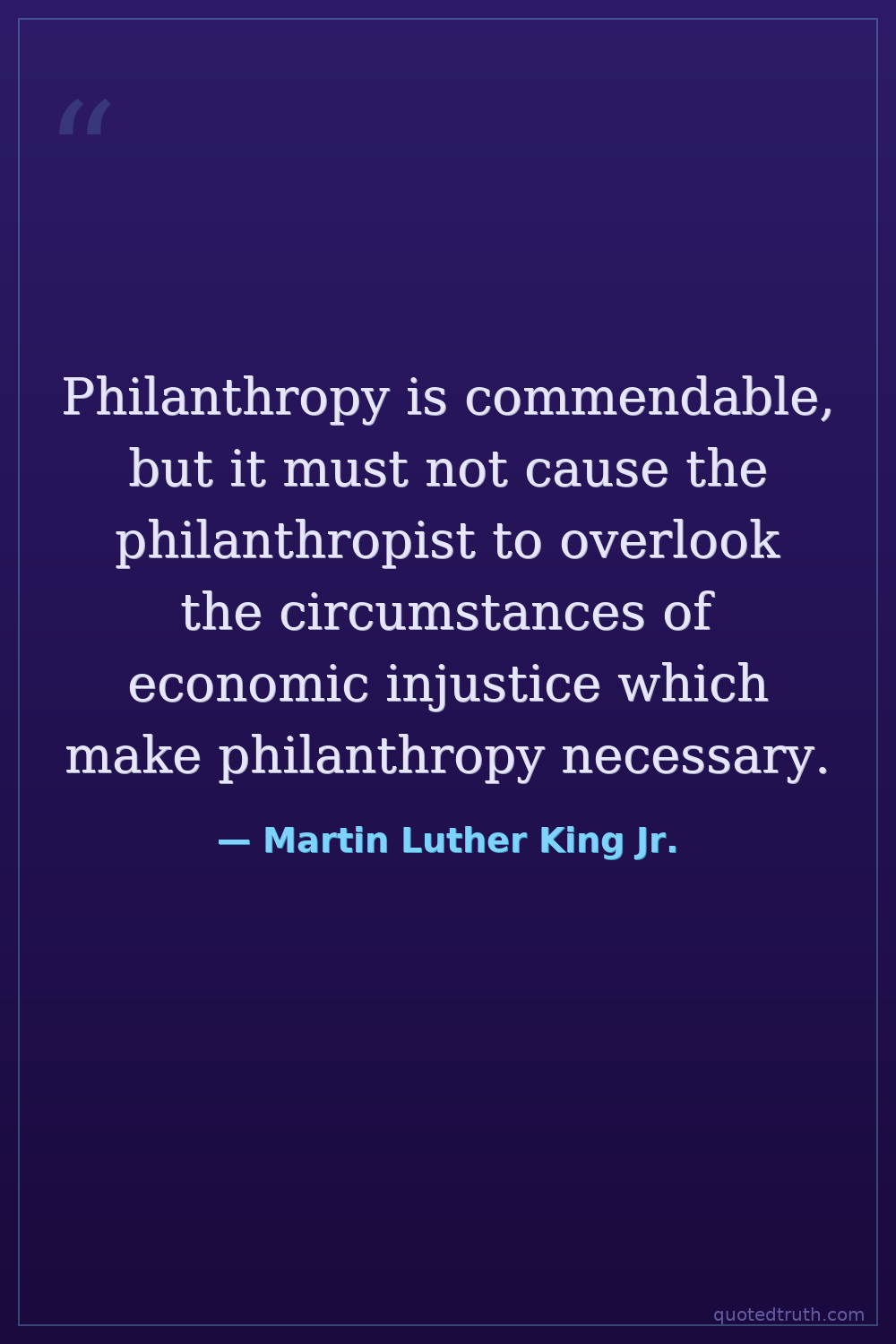 Philanthropy is commendable, but it must not cause the philanthropist to overlook the circumstances of economic injustice which make philanthropy necessary.