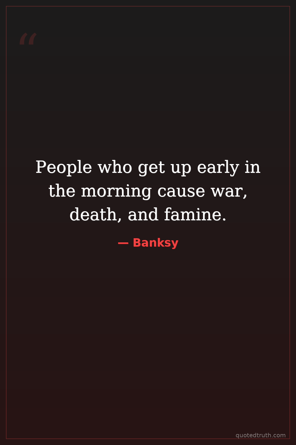 People who get up early in the morning cause war, death, and famine.