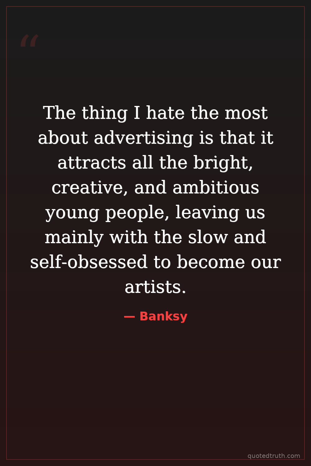 The thing I hate the most about advertising is that it attracts all the bright, creative, and ambitious young people, leaving us mainly with the slow and self-obsessed to become our artists.