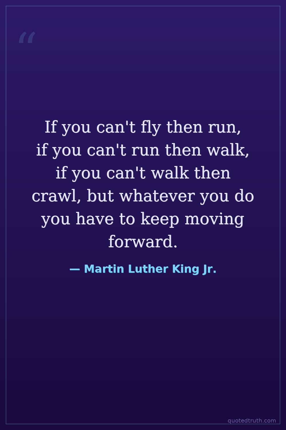 If you can't fly then run, if you can't run then walk, if you can't walk then crawl, but whatever you do you have to keep moving forward.