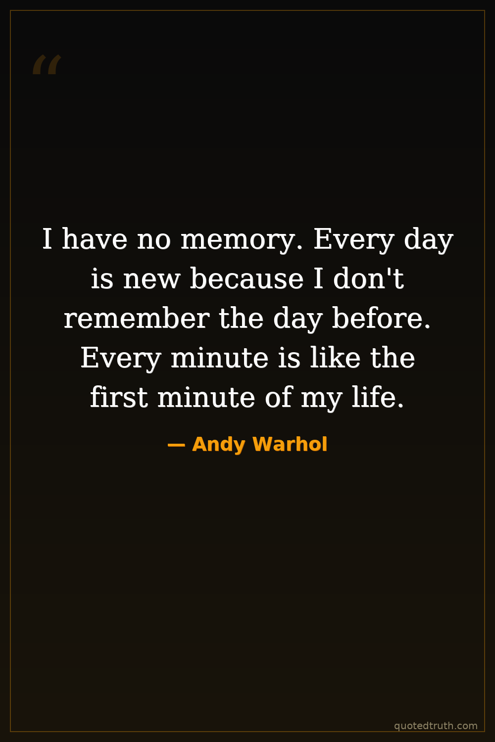 I have no memory. Every day is new because I don't remember the day before. Every minute is like the first minute of my life.