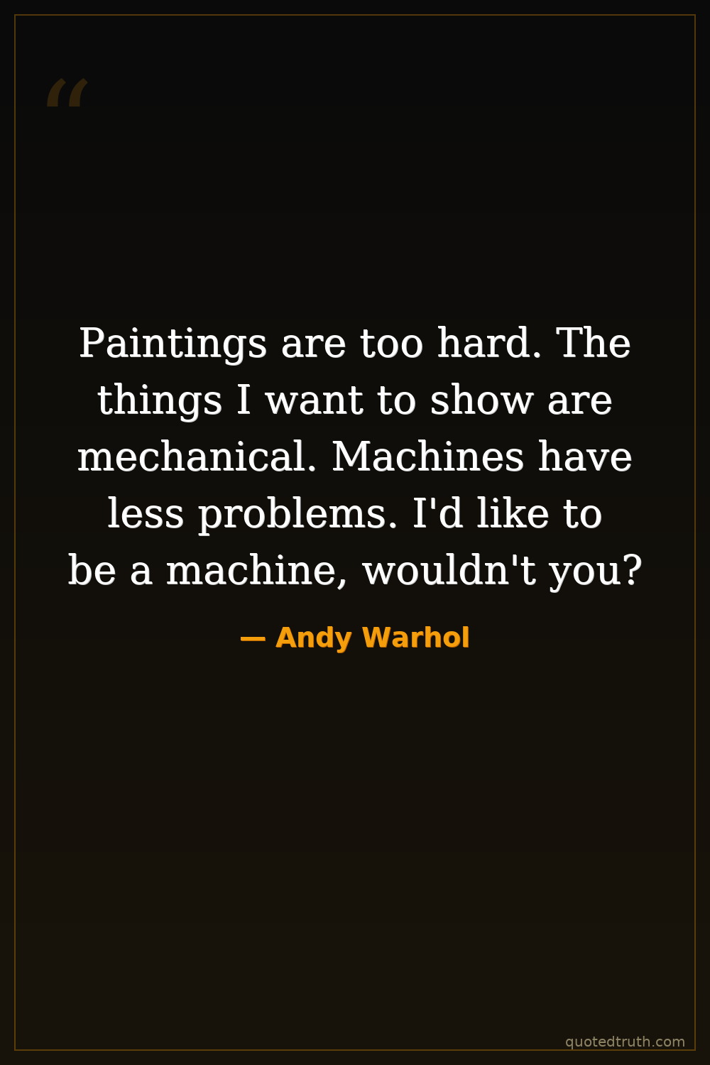 Paintings are too hard. The things I want to show are mechanical. Machines have less problems. I'd like to be a machine, wouldn't you?