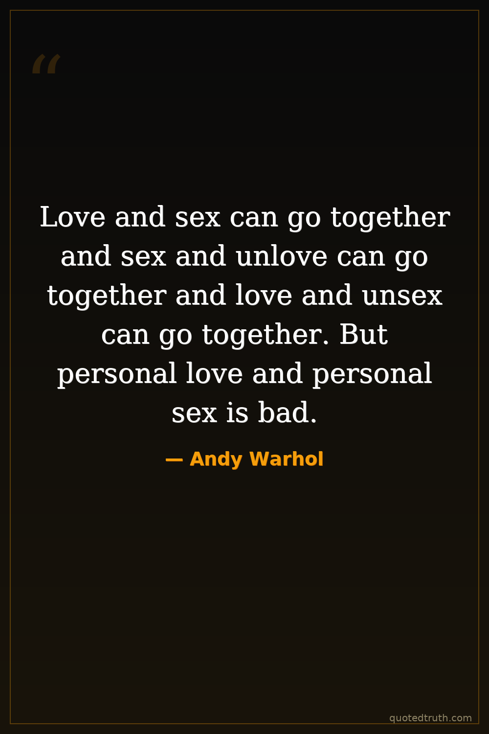 Love and sex can go together and sex and unlove can go together and love and unsex can go together. But personal love and personal sex is bad.