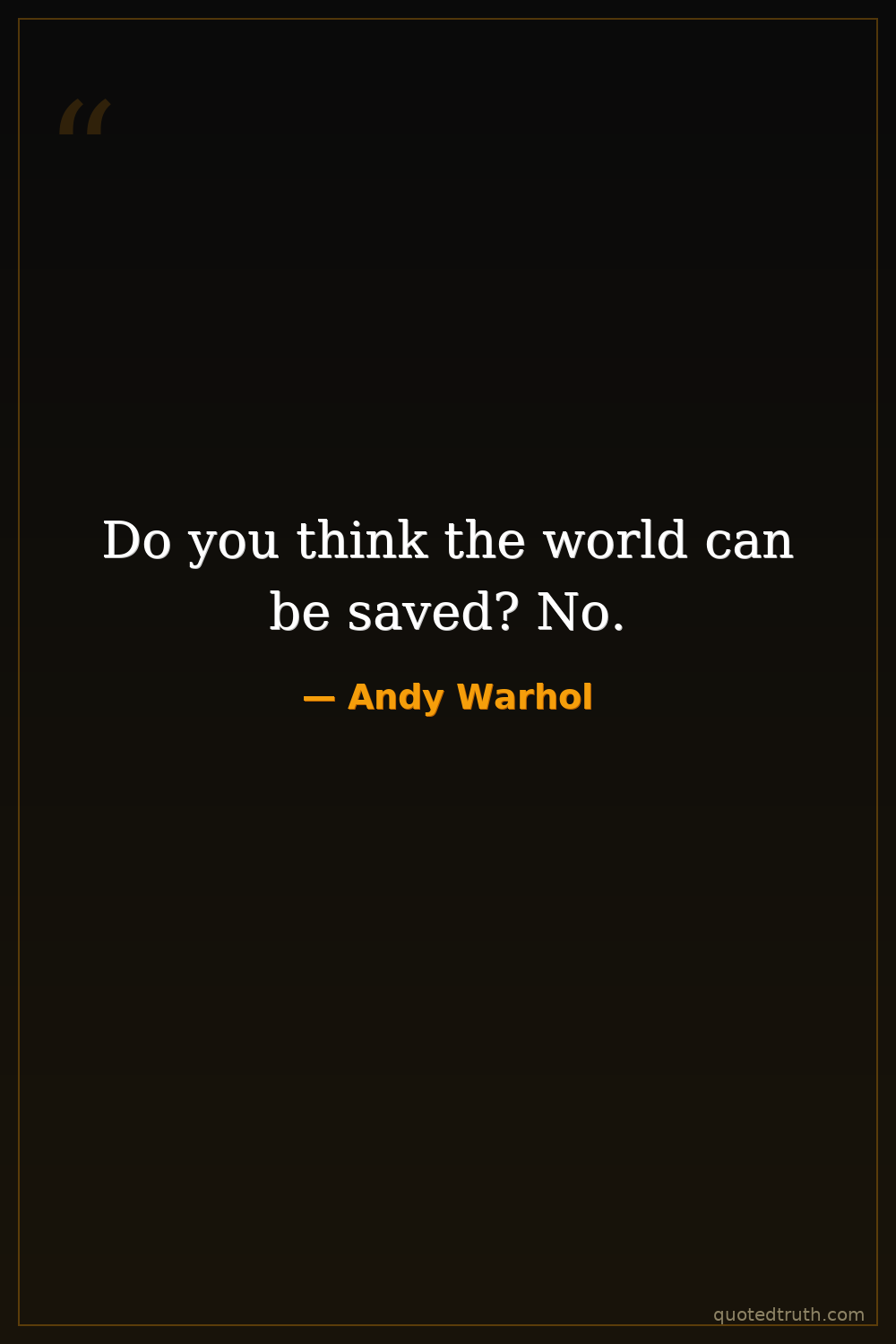 Do you think the world can be saved? No.