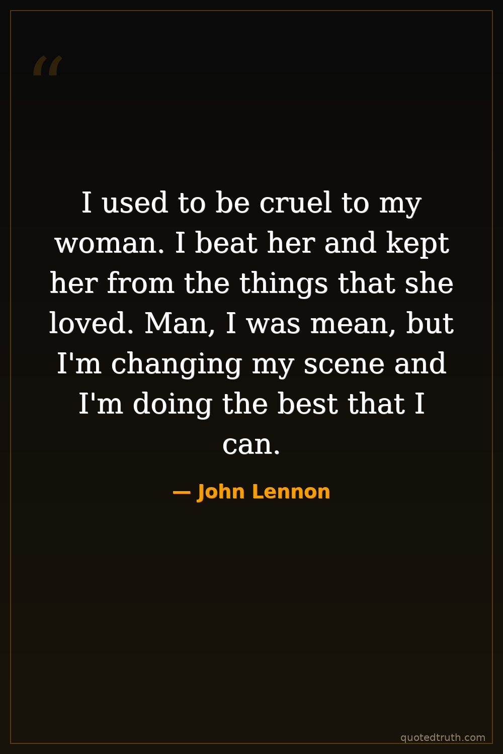 I used to be cruel to my woman. I beat her and kept her from the things that she loved. Man, I was mean, but I'm changing my scene and I'm doing the best that I can.