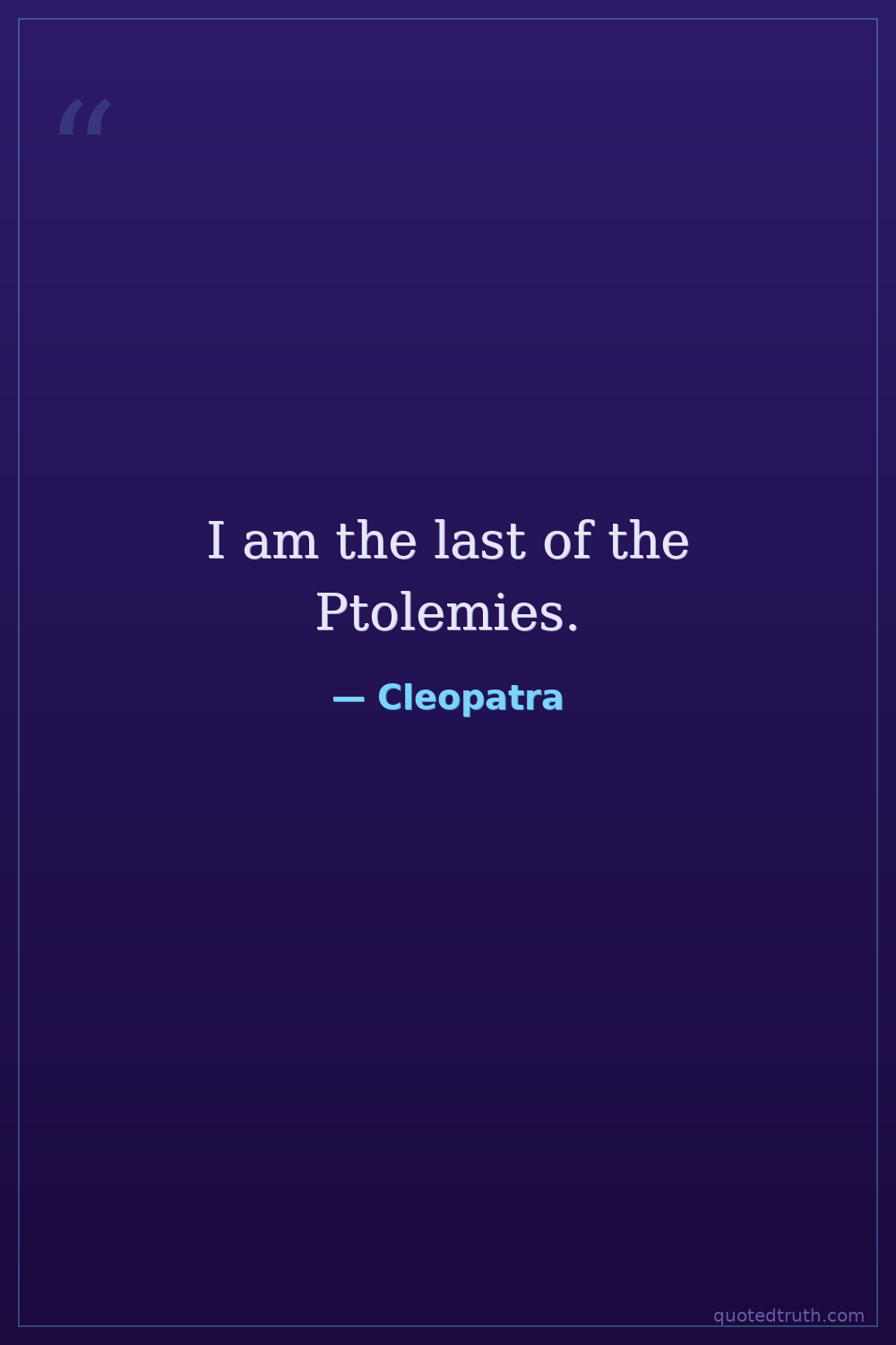I am the last of the Ptolemies.