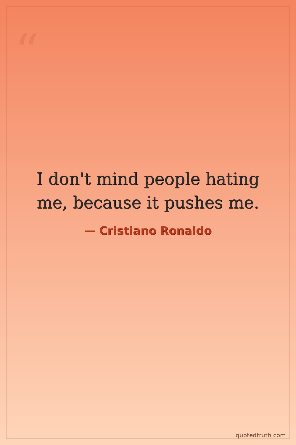 I don't mind people hating me, because it pushes me.