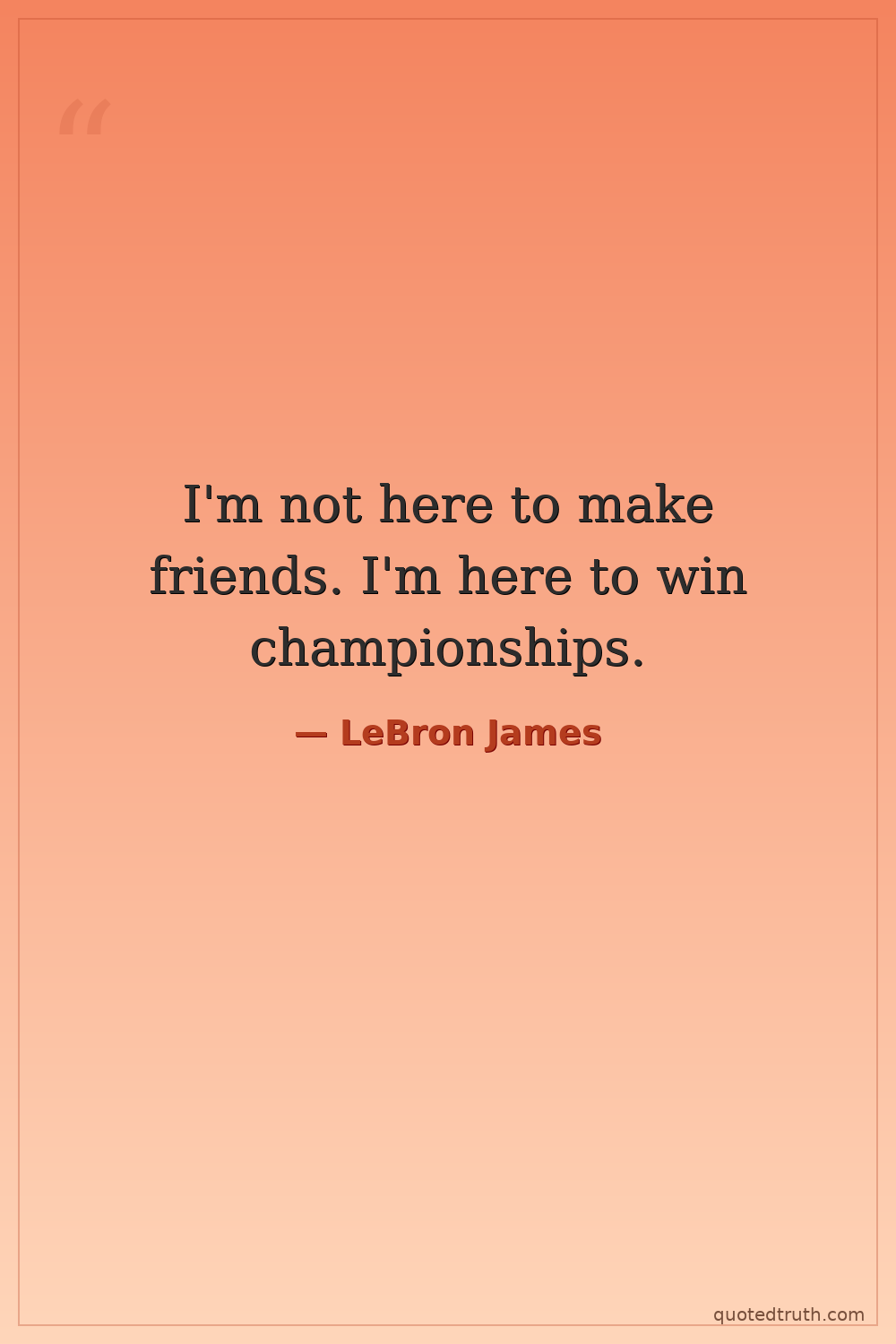 I'm not here to make friends. I'm here to win championships.